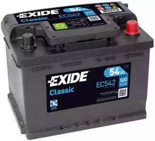 Battery Brand: EXIDE Battery Code: EC542 Voltage: 12 V Battery Capacity: 54 AH Cold Cranking Amps (CCA): 500 A Length: 242 Width: 175 Height: 175 Post Positions: 0 Terminal Type: EN Hold-down Type: B13 | |