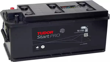 Battery Brand: TUDOR Battery Code: TG1705 Voltage: 12 V Battery Capacity: 170 AH Height: 210 Width: 218 Length: 514 Cold Cranking Amps (CCA): 950 A Post Positions: 3 Hold-down Type: B03 | |